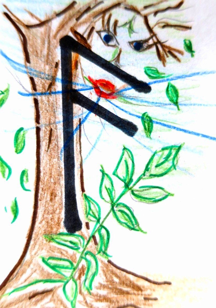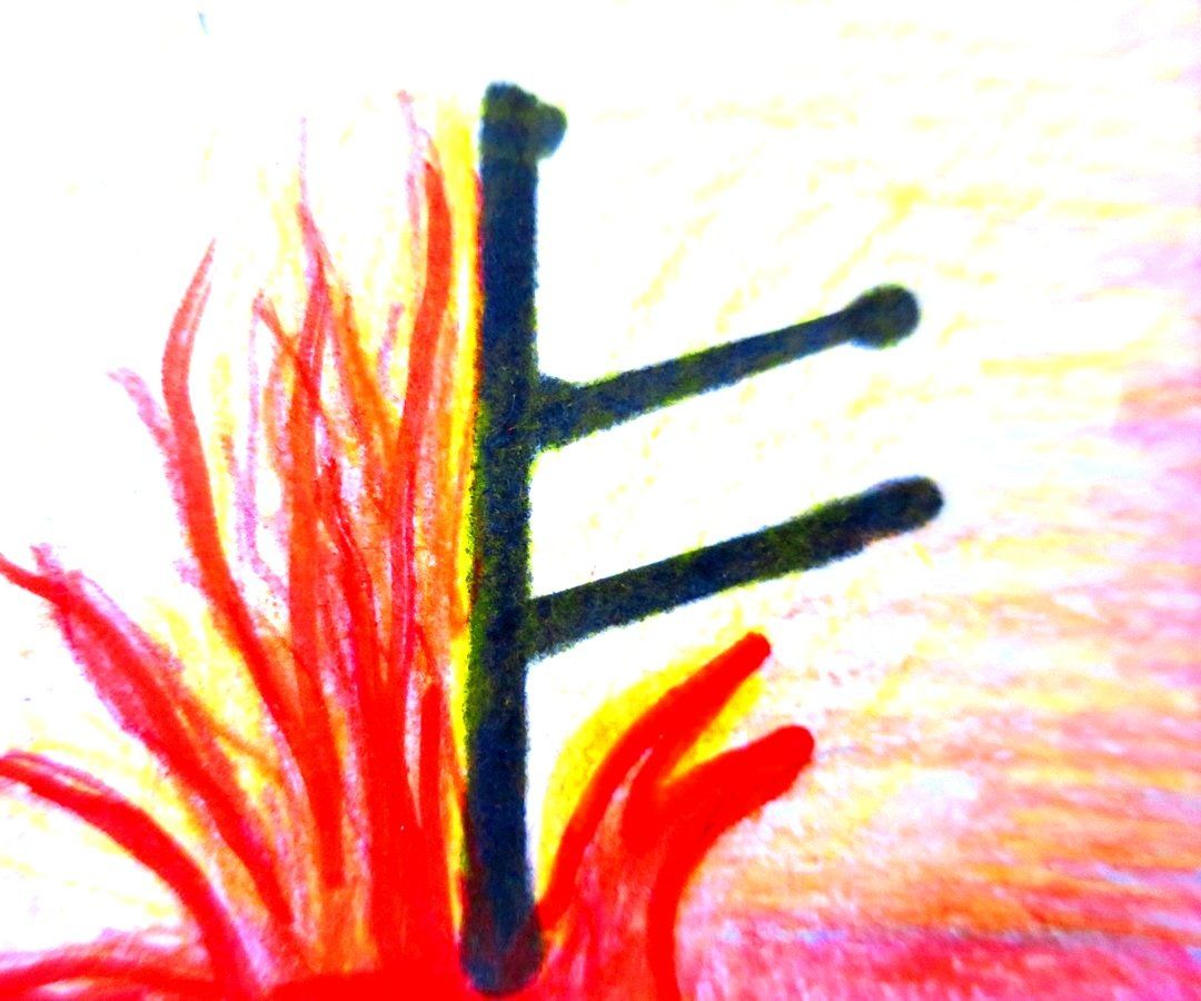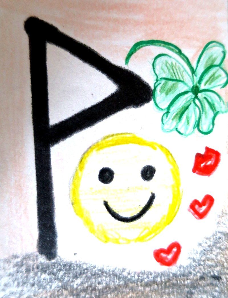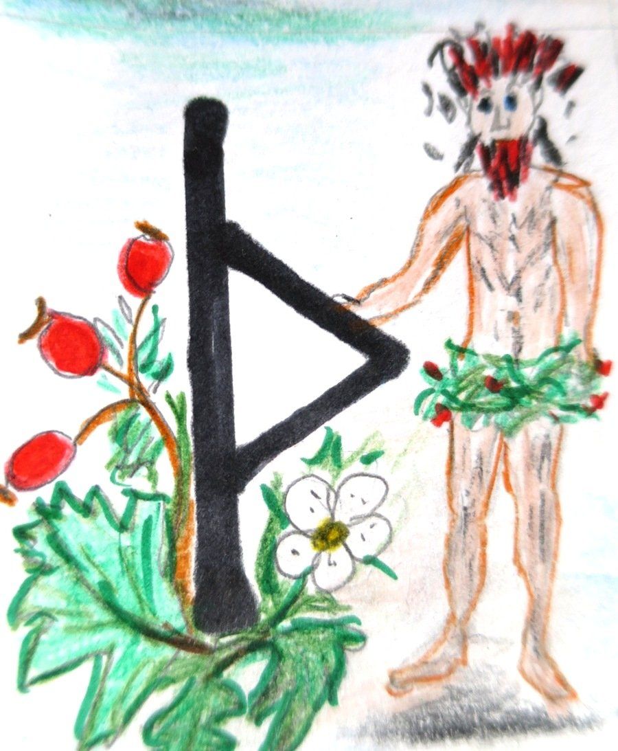 Deutung: Glücksrune im Sinne von Gewinn, Wohlstand und Genuss, Segen und alles was uns positiv mit unserer Lebensfeude in Verbindung bringt. Ein Symbol für die Göttin der Liebe.