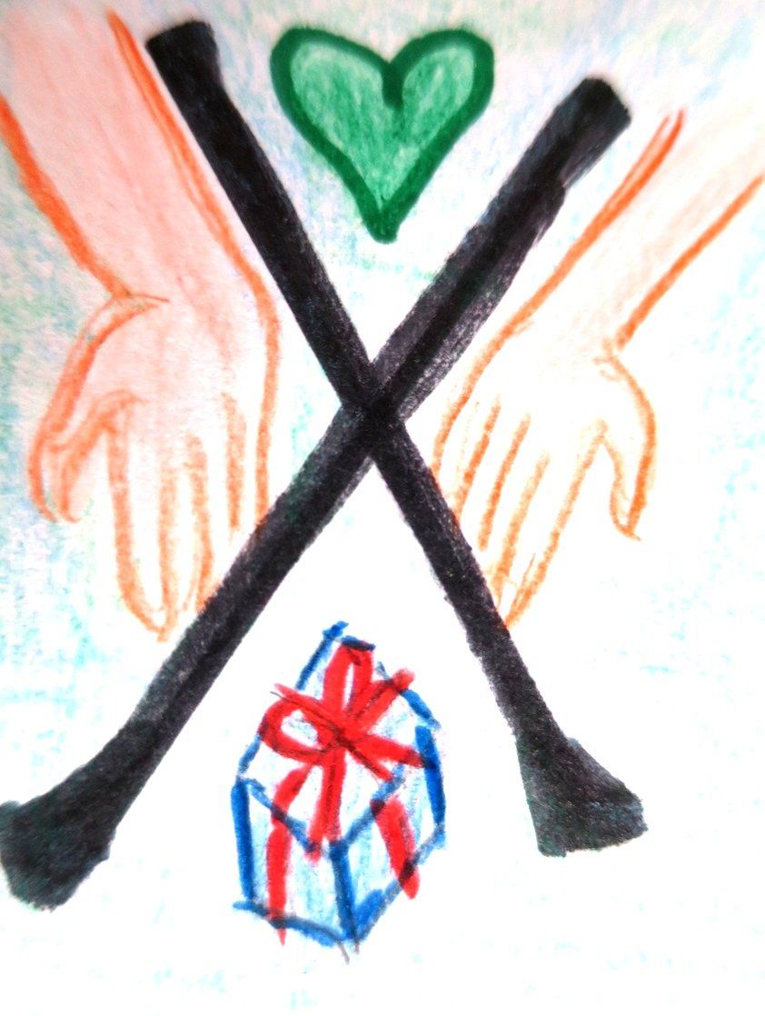 Deutung: Geben, Verschenken, Helfen, Hingabe und Opferbereitschaft. Man kann nur weiterreichen was man selbst hat. Daher bedeutet es auch greifen und tragen und zeigt das Nehmen und Geben einander bedingen.