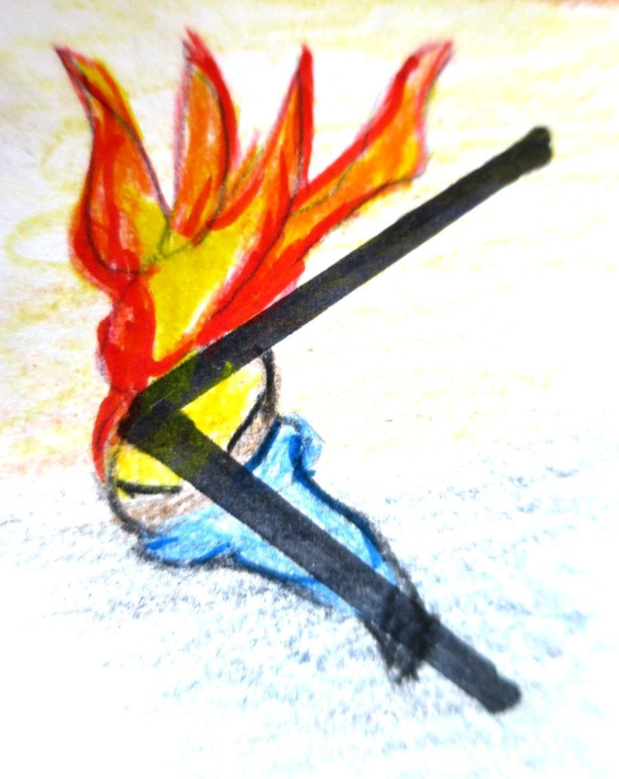 Deutung: Entzündung einer Fackel im Sinne des menschlichen Lebensfunken aber auch das verzehren und erlöschen durch Krankheit und Tod.